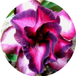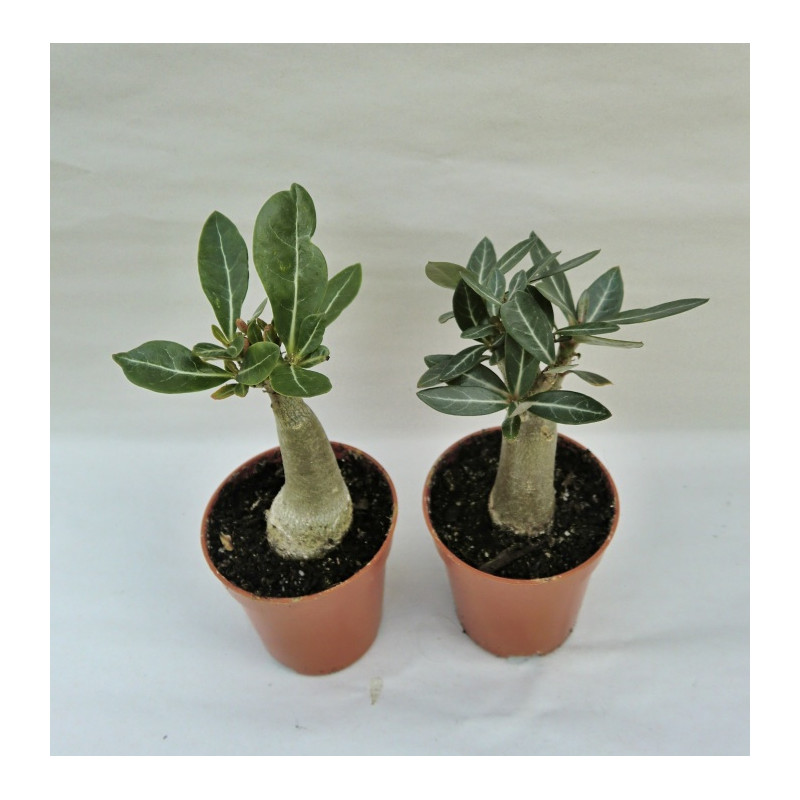 Suchomilný sukulentní keř s velmi ztlustlým kmenem. Oválné, lesklé, kožovité listy na konci výhonů. Jednoduché velké, mléčně bílé květy s růžovým okrajem a žlutým jícnem. Teplomilná rostlina vhodná na tvorbu bonsai. Expedujeme rostliny: Ø květináče 5,5cm, výška 5+cm, Ø kmínku 1+cm.