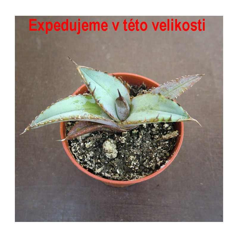 Středně velká agáve se stříbřitě šedými širokými listy v růžici na okrajích s krátkými trny. Mrazuvzdorná do -20°C. Pochází z jihu USA a severu Mexika. Expedujeme rostliny: Ø rostliny 5+cm.