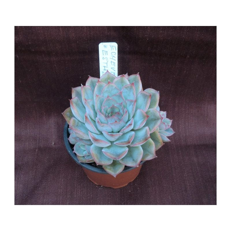Drobná Echeverie s modrozelenými růžicemi ojíněných listů, které mají načervenalý nádech na okrajích. Zvonkovité, červeno-růžové květy jsou uvnitř žluté. Pochází z Mexika. Expedujeme rostliny: Ø květináče 5,5cm.
