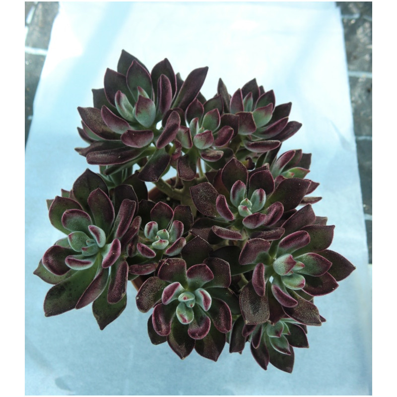 Rozvětvený sukulentní keř, který na koncích svých větví vytváří lesklé hnědofialové-černé listové růžice. Reaguje na sluneční světlo, čím je sluneční světlo silnější, tím jsou listy černější. Jasně žluté květy jsou proti téměř černým listům velmi nápadné. Expedujeme rostliny: Výška rostliny 7+cm.