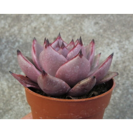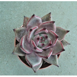 Echevérie, po okraji zvlněné šedozelené listy s růžovým okrajem. Robustní vzrůst, růžice může dosahovat až 25cm v průměru při pěstování ve větší nádobě. Zvonkovité růžové květy. Expedujeme rostliny: Ø květináče 6,5cm.