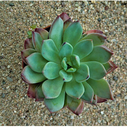 Echevérie s šedozelenými listy v růžici s jasně červenými okraji. Expedujeme rostliny: Ø květináče 5,5cm.