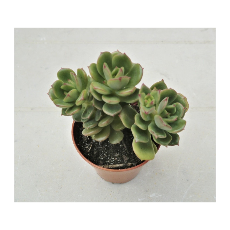Echevérie, tvoří husté růžice o průměru až 5cm. Zelené listy jsou na okrajích červené. Na podzim se zbarvuje většina plochy listů do červena. Žlutooranžové, z vnější části červené květy. Expedujeme rostliny: Ø květináče 5,5cm.