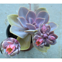 Vytváří růžice 8-11 cm v průměru. Šedozelené listy s narůžovělými okraji. Růžové.zvonečkovité květy na lodyze. Expedujeme rostliny: Ø květináče 5,5cm.