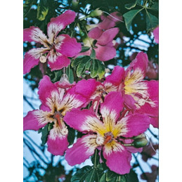 Chorisie, vytváří ztlustlý kmen se zelenou kůrou. Vhodná pro bonsai. Nádherné 15cm velké květy. Starší rostliny mají kmínek pokrytý trny. Expedujeme rostliny: Ø květináče 6,5cm, výška rostliny 18+cm.