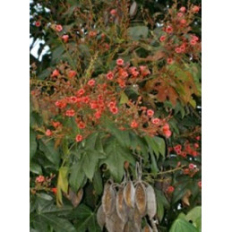 Strom s deštníkovitou korunou s prstovitě dělenými listy a růžovo-žlutými květy. Vytváří ztlustlý kmen. Plody (tobolky) 15cm dlouhé naplněné bílými vlákny. Posvátný strom indiánů Maya. Expedujeme rostliny: Ø květináče 6,5cm.