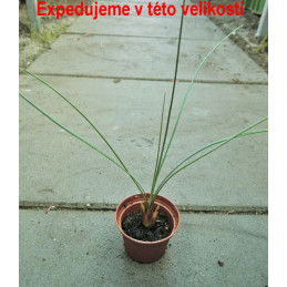 Vytváří korunu úzkých, šedozelených, trávovitých listů na vrcholu silného robustního kmene. Velmi krásný druh ze severní části Mexika. Mrazuvzdorný až do -15°C. Expedujeme rostliny: Ø květináče 5,5cm.
