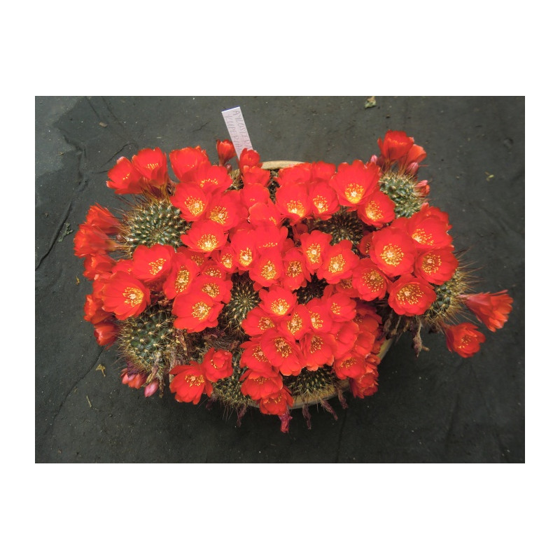 Kaktus s pestrými ostny a jasně červenými, velkými květy. Nenáročný na pěstování. Expedujeme rostliny: Ø květináče 5,5cm.