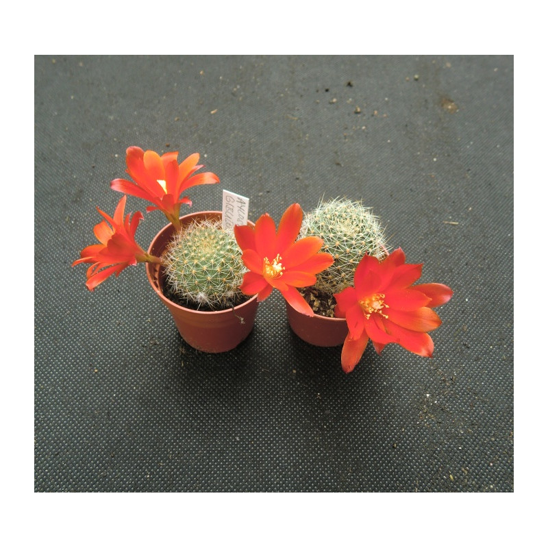 Kulovitý až mírně protáhlý, trsovitě rostoucí kaktus. Bílé až hnědavé tenké trny. Červené květy. Expedujeme rostliny: Ø květináče 5,5cm, květuschopné.