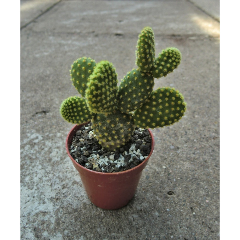 Opuncie s malými, zelenými, dužnatými listy, které jsou pokryty svazečky krátkých žlutých štětin. Světle žluté květy a červené plody. Pochází z Mexika. Okrasný, suchomilný a na pěstování nenáročný kaktus. Expedujeme rostliny: Ø květináče 5,5cm.