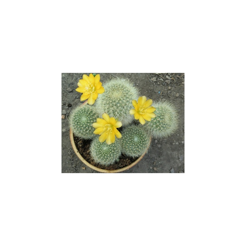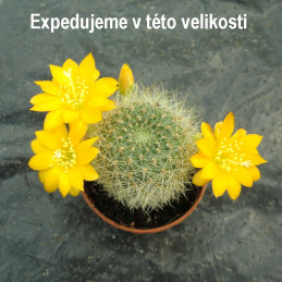 Kaktus pokrytý bílými, měkkými ostny. Vonné zlatožluté květy 2,5cm v průměru. Později vytváří shluky těl. Pochází z Mexika. Expedujeme rostliny: Ø květináče 5,5cm.