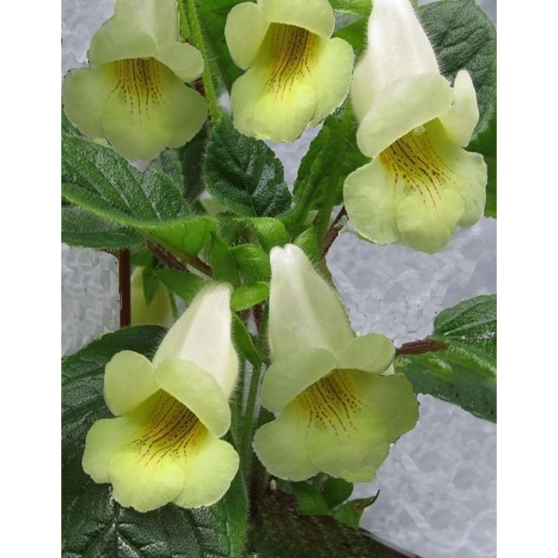 Suchomilná dekorativní rostlina, která vytváří kulatý kaudex, ze kterého vyrůstá stonek se zelenými, plstnatými listy. Světle žluté, zvonkovité květy s tmavou kresbou v hrdle. Pochází z Brazílie. Expedujeme rostliny:  Ø kaudexu /hlízy 2+cm