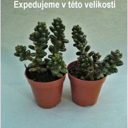 Nízký Rozchodník s vejčitými , tmavě zelenými listy, které jsou pokryté bělavými šupinami. Růžovobílé hvězdicovité květy. Vhodný na tvorbu bonsai.  Expedujeme rostliny: Ø květináče 5,5cm, výška rostliny 6+cm, květuschopné.
