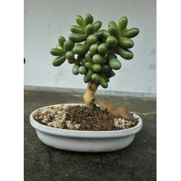 Keříčkovitá až stromkovitá sukulentní rostlina s drobnými zelenými listy. Narůžovělé, drobné květy v bohatém květenství. Snadno se tvaruje. Expedujeme rostliny: Ø květináče 5,5cm.