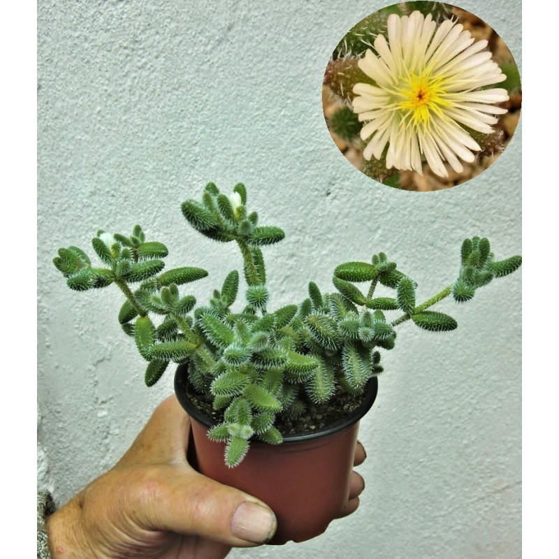 Kosmatec, sukulentní, suchomilná rostlina, která vytváří nízký, hustý keřík s kobercovitým růstem a množstvím žlutých květů. Pochází z Jižní Afriky. Mrazuvzdorná. Expedujeme rostliny: Ø květináče 6,5cm.