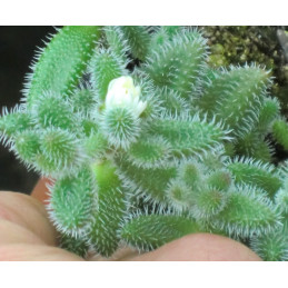 Vytváří menší listové růžice, které jsou zelené a na slunci se okraje listů zbarvují červeně. Hvězdicovité, bílé květy. Expedujeme rostliny: Ø rostliny 4,5+cm.