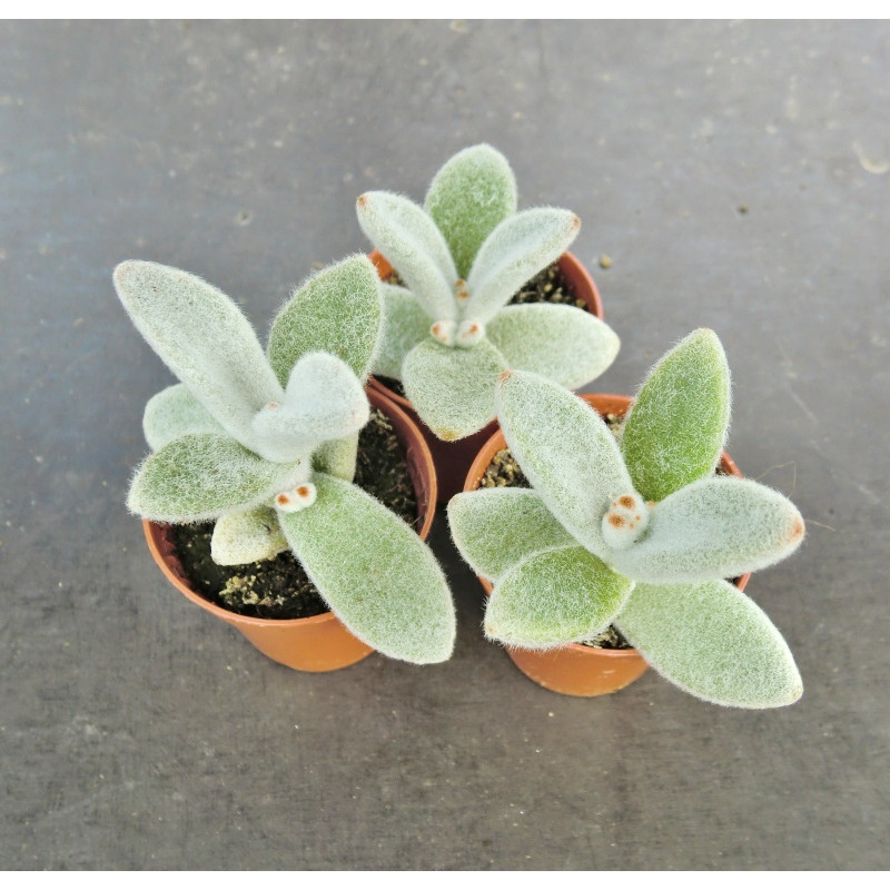 Rozvětvený keříček, listy jsou hustě pokryty bílými chloupky, růžové květy. Pochází z Madagaskaru. Expedujeme rostliny: Ø květináče 5,5cm.