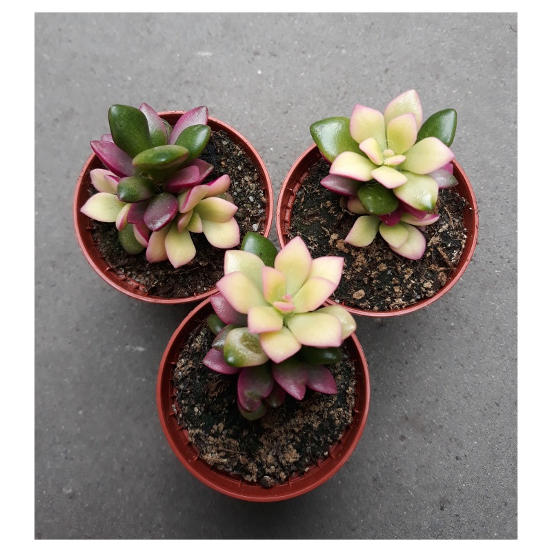 Vytváří spirálovité růžice zeleno-růžových listů. Velké, jasně růžové květy. Expedujeme rostliny: Ø květináče 5,5cm.