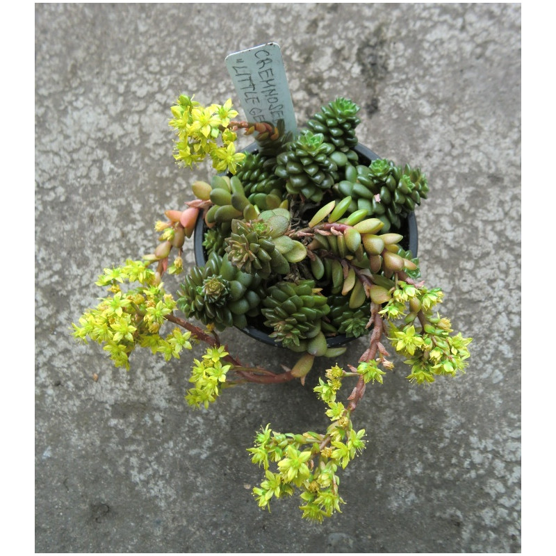 Růžičky tvořené drobnými lístky jsou lesklé, olivově zelené. Na slunci se zbarvují do měděné- červené. Žluté, hvězdicovité malé květy. Expedujeme rostliny: Ø květináče 5,5cm, keříček.