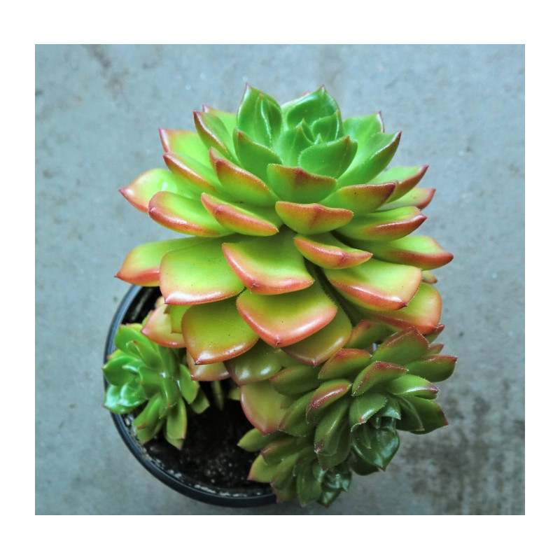 Sukulentní rostlina, která tvoří růžice modrozelených listů s mírně narůžovělými, zvlněnými okraji. Zvonkovité květy jsou světle růžové, uvnitř žluté na rozvětveném stvolu. Dorůstá do šířky až 25cm. Expedujeme rostliny: Ø květináče 5,5cm.