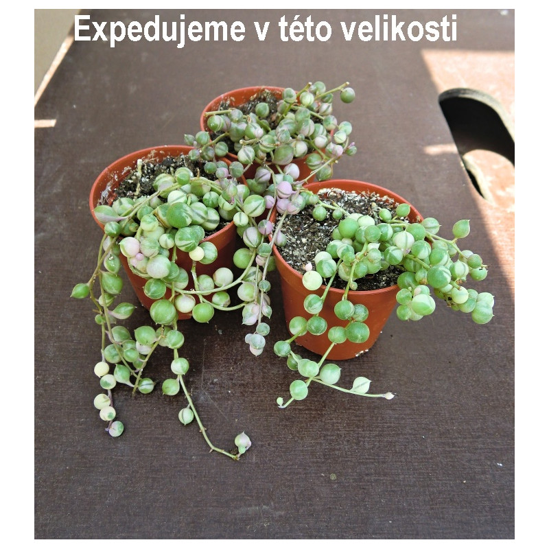 Starček převislý. Tento neobvyklý sukulent vytváří na svých dlouhých stoncích listy ve tvaru korálků. Expedujeme rostliny: Ø květináče 5,5cm.