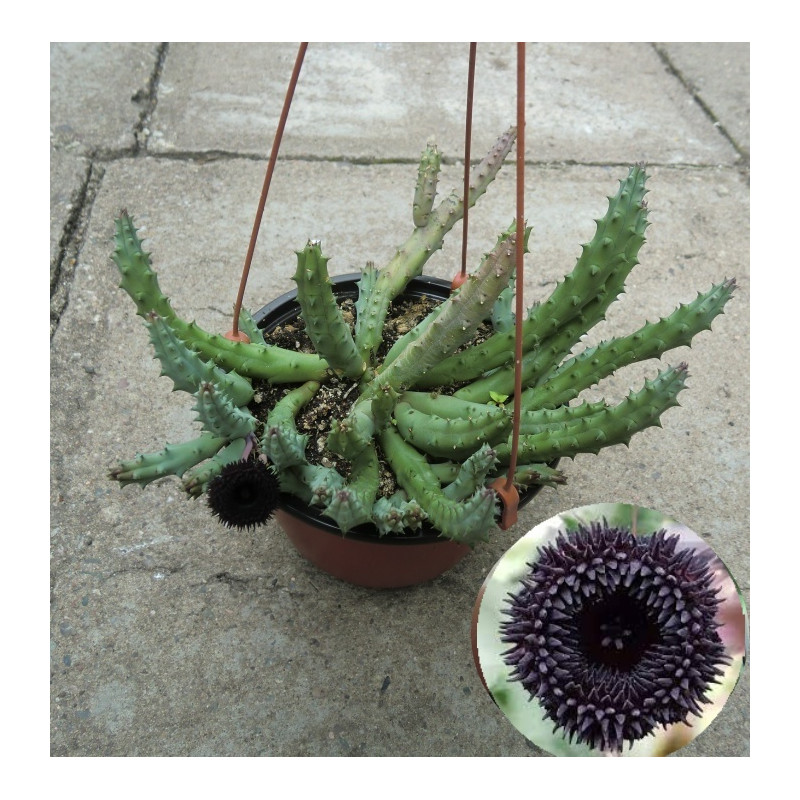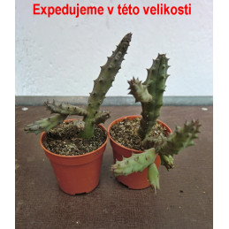 Zajímavý trsovitý druh se vzpřímenými, pětižebernými lodyhami, které jsou zelené až purpurové. Žluté květy, červeně páskované s ostnitými okvětními lístky se liší velikostí a tvarem. Expedujeme rostliny: Ø květináče 5,5cm.