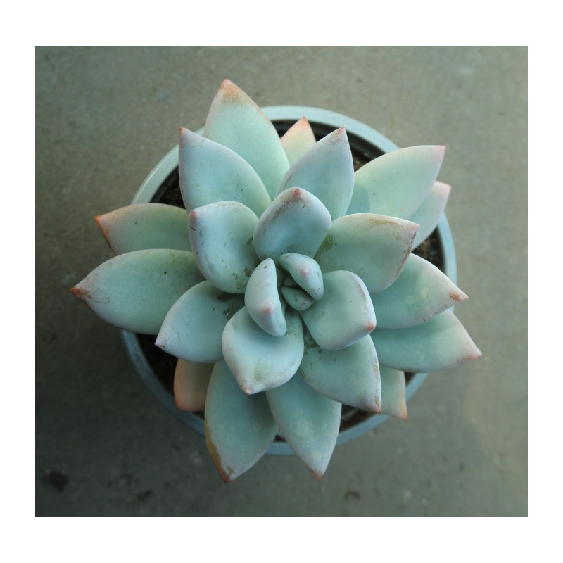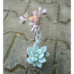Tento kříženec vytváří růžici masitých listů, které jsou pokryty šedavým povlakem a na koncích s narůžovělými tóny. Expedujeme rostliny: Ø rostliny