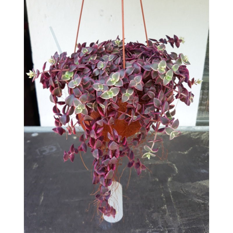 Bohatě větvený sukulentní keřík s šedomodrými trojhrannými listy a fialovými kvítky. Stonky se na plném slunci zbarvují do tmavě fialové barvy. Expedujeme rostliny: Ø květináče 5,5cm, keříček.