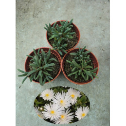 Nízká, sukulentní, suchomilná rostlina s bílými květy, která vytváří husté trsy štíhlých lístků. Pochází z Jižní Afriky. Expedujeme rostliny: Ø květináče 5,5cm, květuschopný keříček.