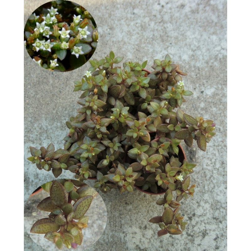 Tlustice s drobnými tmavě zelenými lístky, které jsou hnědě kropenaté. Droboučké bílé kvítky na vrcholech. Nejlépe je rostlina zbarvená na podzim. Pochází z horských oblastí Keni a Tanzanie. Expedujeme rostliny: Ø květináče 5,5cm, květuschopný keříček.