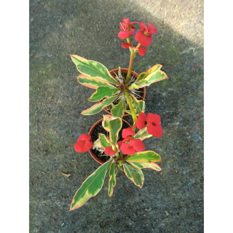 Pryšec s barevnými listy a malými červenými květy. Expedujeme rostliny: Výška rostliny 8+cm, květuschopné.