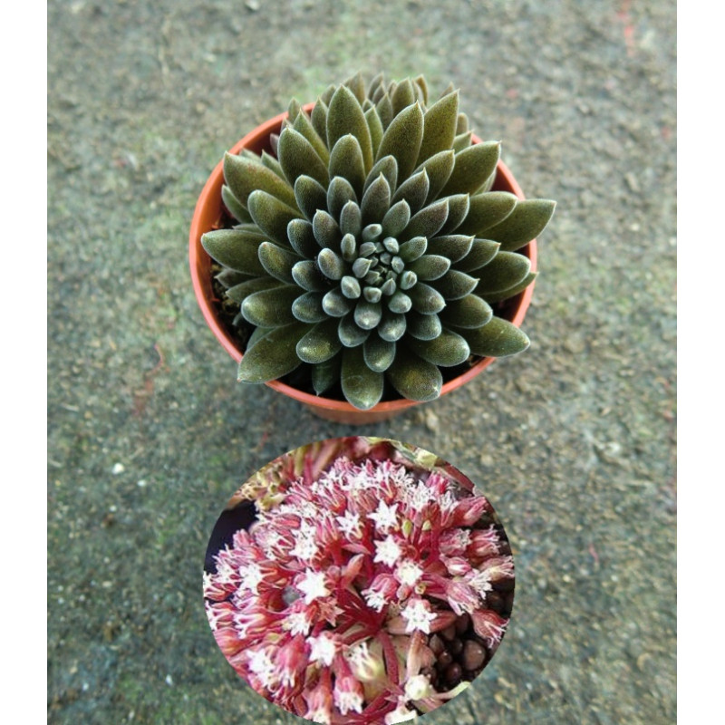 Netřesk, odolná sukulentní trvalka. Tmavě čevené růžice listů s fialovými špičkami a modrozeleným středem. Růžové květy na vzpřímené lodyze. Vybarvení se později mění v závislosti na ročním období. Růžové květy. Mrazuvzdorný a nenáročný na pěstování. Vhodný na skalky, okraje záhonů a do nádob. Expedujeme rostliny: Ø květináče 6,5cm.