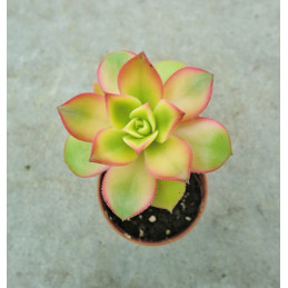 Tento nízký, keříčkovitý sukulent má zelené panašované listy s nažloutlými odstíny, které se na slunci zbarvují do jemných růžových odstínů. Květy jsou drobné, bílé až růžové, Pochází z JAR. Expedujeme rostliny: Ø květináče 5,5cm.