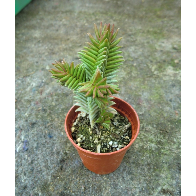 Jedná se o křížence 2 druhů: Crassula pyramidalis a Crassula congesta. Tělo je tvořeno množstvím plochých, přisedlých a trojúhelníkových listů. Na vrcholu vykvéta krémově bílými květy. Pochází z JAR. Expedujeme rostliny: Ø květináče 5,5cm, výška rostliny 4+cm.