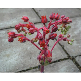 Tvoří růžice ojíněných, modrých - fialových listů při pěstování na slunci. Červené zvonečkovité květy na stonku..Expedujeme rostliny: Ø květináče 5,5cm.