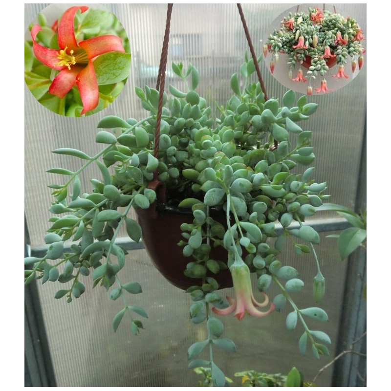 Starček převislý. Tento neobvyklý sukulent vytváří na svých dlouhých stoncích listy ve tvaru korálků. Expedujeme rostliny: Ø květináče 5,5cm.