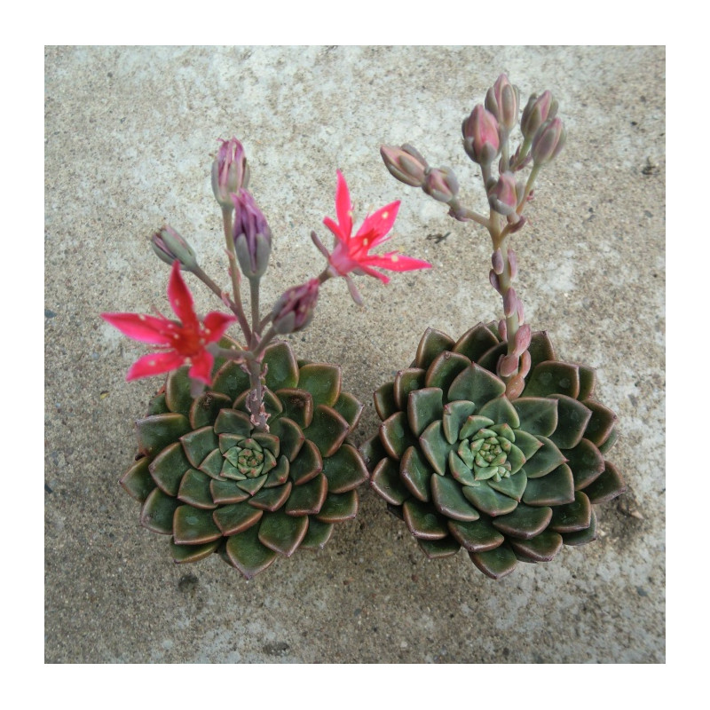 Kříženec Tacitus bellus a Echeveria. Vytváří růžici tmavě zelených.listů. Červené hvězdicovité květy krátkém rozvětveném stvolu. Expedujeme rostliny: Ø květináče 5,5cm.