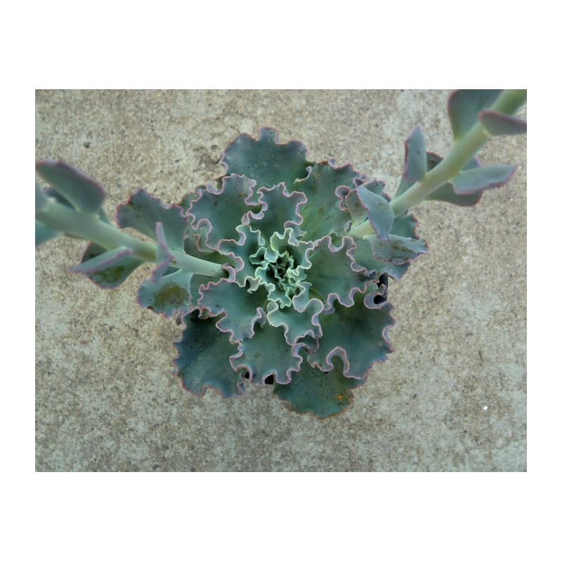 Sukulentní rostlina, která tvoří růžice modrozelených listů s mírně narůžovělými, zvlněnými okraji. Zvonkovité květy jsou světle růžové, uvnitř žluté na rozvětveném stvolu. Dorůstá do šířky až 25cm. Expedujeme rostliny: Ø květináče 5,5cm.