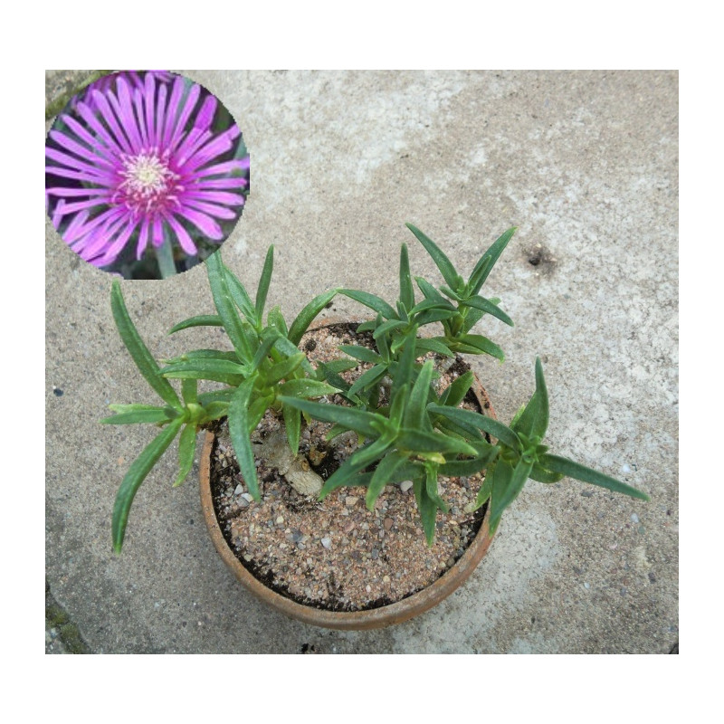 Nízká, sukulentní, suchomilná rostlina s fialovo-růžovými květy, kopinatými listy a kobercovitým růstem. Pochází z Jižní Afriky. Mrazuvzdorná. Expedujeme rostliny: Ø květináče 5,5cm.