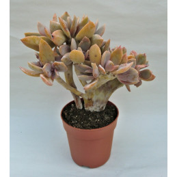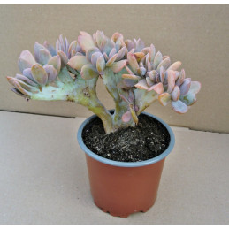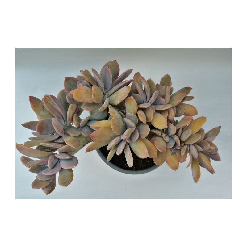 Kristátní forma této sukulentní rostliny je kříženec mezi Graptopetalum paraguayense a Echeveria gibbiflora. Dužnaté, ojíněné listy s voskovitým povlakem mají odstíny šedomodré, bronzové až fialové. Pochází z Mexika. Zbarvení je dáno v závislosti na ročním období a podmínkách růstu. Expedujeme rostliny: Ø květináče 6,5cm.