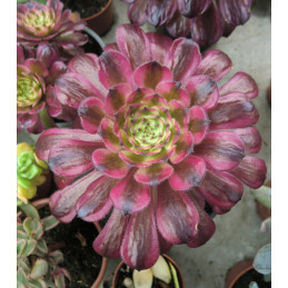 Toto Aeonium tvoří růžice listů s velmi atraktivním, pestrým zbarvením. Hrozny hvězdicovitých, jasně žlutých květů. Rostliny během roku vykazují přechody barev a čím tvrději se rostliny pěstují, tím intenzivnější barvy jsou. Expedujeme rostliny: Ø květináče 6,5cm, výška rostliny 11cm.