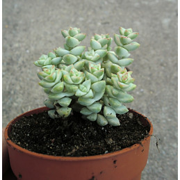 Nenáročná sukulentní rostlina. Šedě ojíněné, velmi tučné listy v růžici získávají fialový nádech na slunci. Zvonečkové, zelenobílé květy jsou uvnitř červené. Pochází z Mexika. Expedujeme rostliny: Ø květináče 6,5cm.