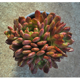 Vytváří stromeček s voskovitými drobnými,sytě zelenými listy, které jsou seskupené v malých hustých růžičkách. Na slunci se konce listů zbarvují do červena. Malé žluté květy. Vhodný na bonsai. Expedujeme rostliny: Ø květináče 5,5cm, rozvětvený keříček.