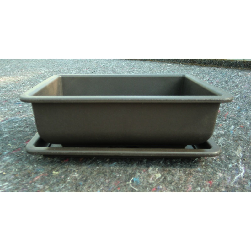 Plastová, obdélníková, hnědá miska včetně podmisky. Velikost 215x150mm.